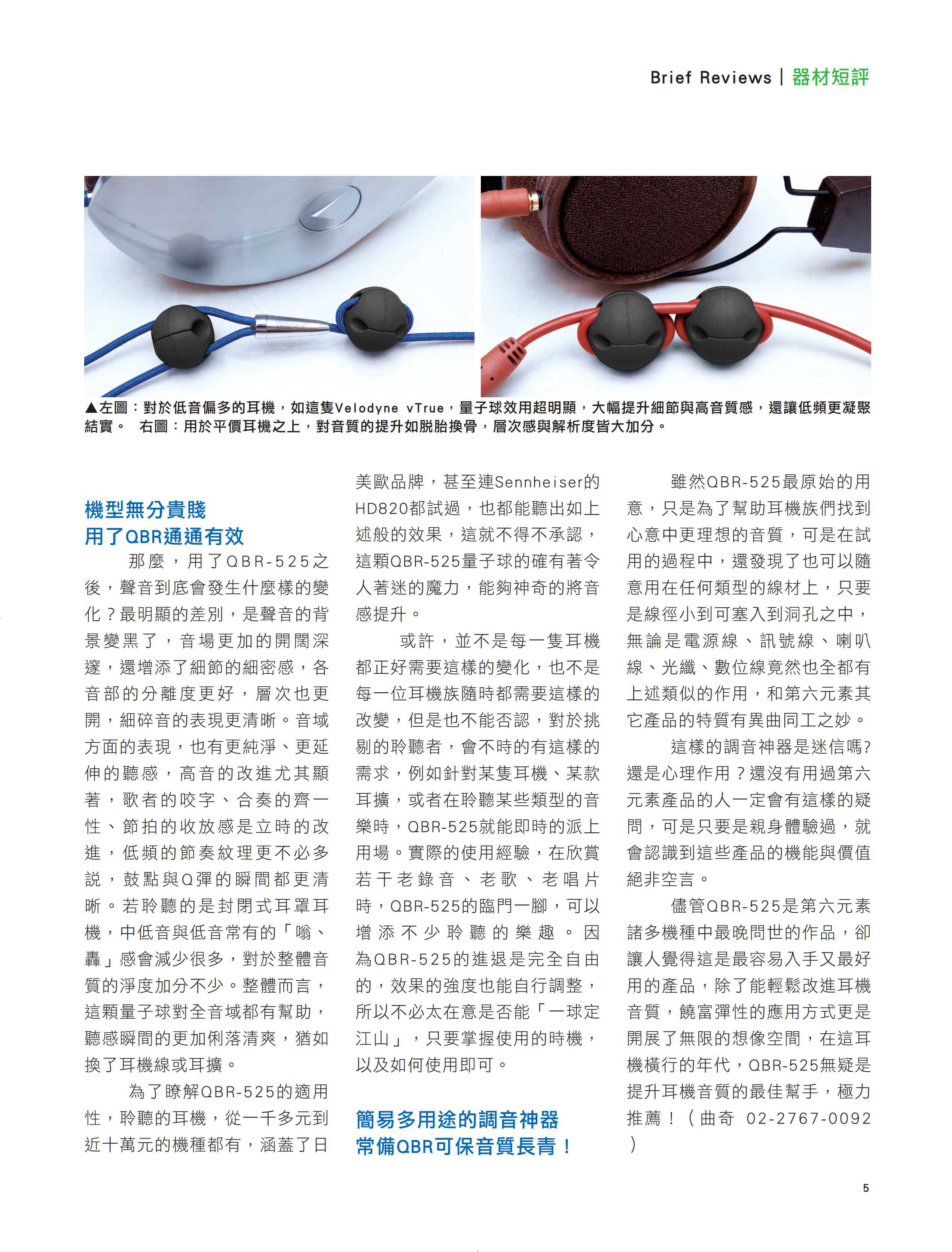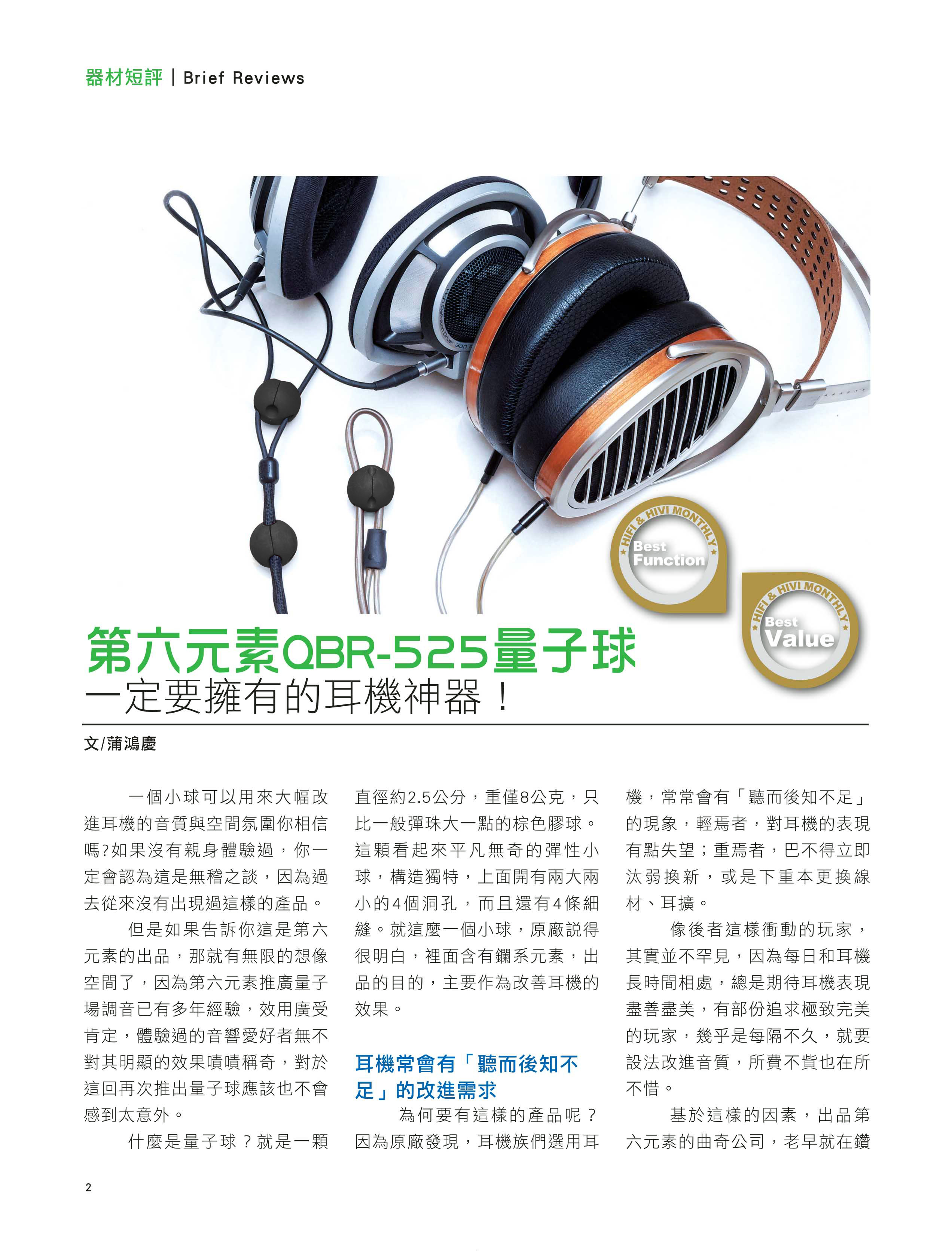 【第六元素】QBR-525量子球,一定要擁有的耳機神器!榮獲HIFI&HIVI MONTHLY 華人音響 權威 總編輯 蒲鴻慶 ,兩個最佳推薦