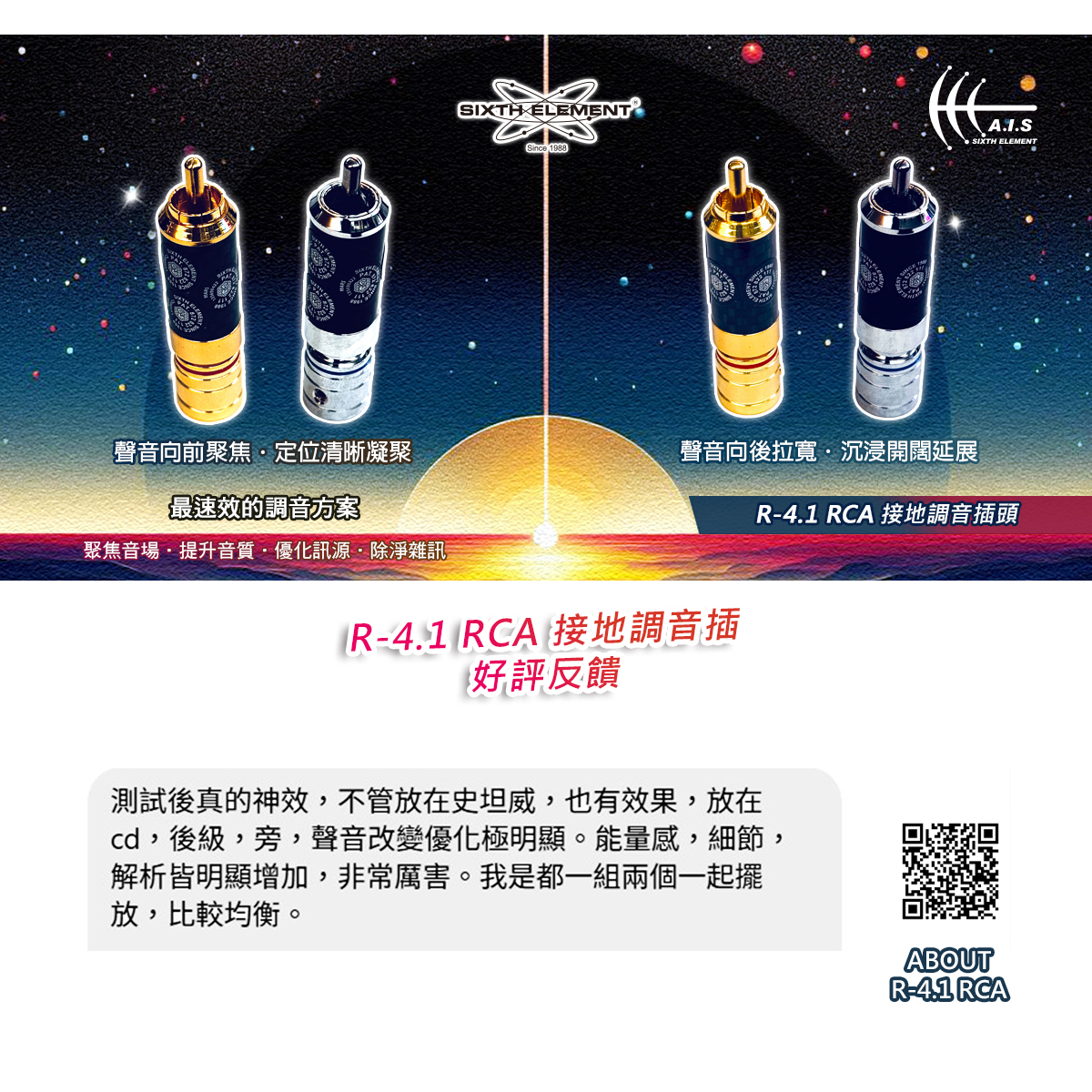 🔥 SIXTH ELEMENT 第六元素 公司成立於1988年,1996年創立品牌SIXTH ELEMENT第六元素,從事生產製造與OEM出口全世界,致力於產品研發設計並多元化,支援各種產業的實際應用,包括汽車、音響、工業設備、生活保健系列,跨足於環保、節能、流行、時尚、保健的領域。並於2017年全球首創專利聲學改善系統Acoustics Improvement System (A.I.S)