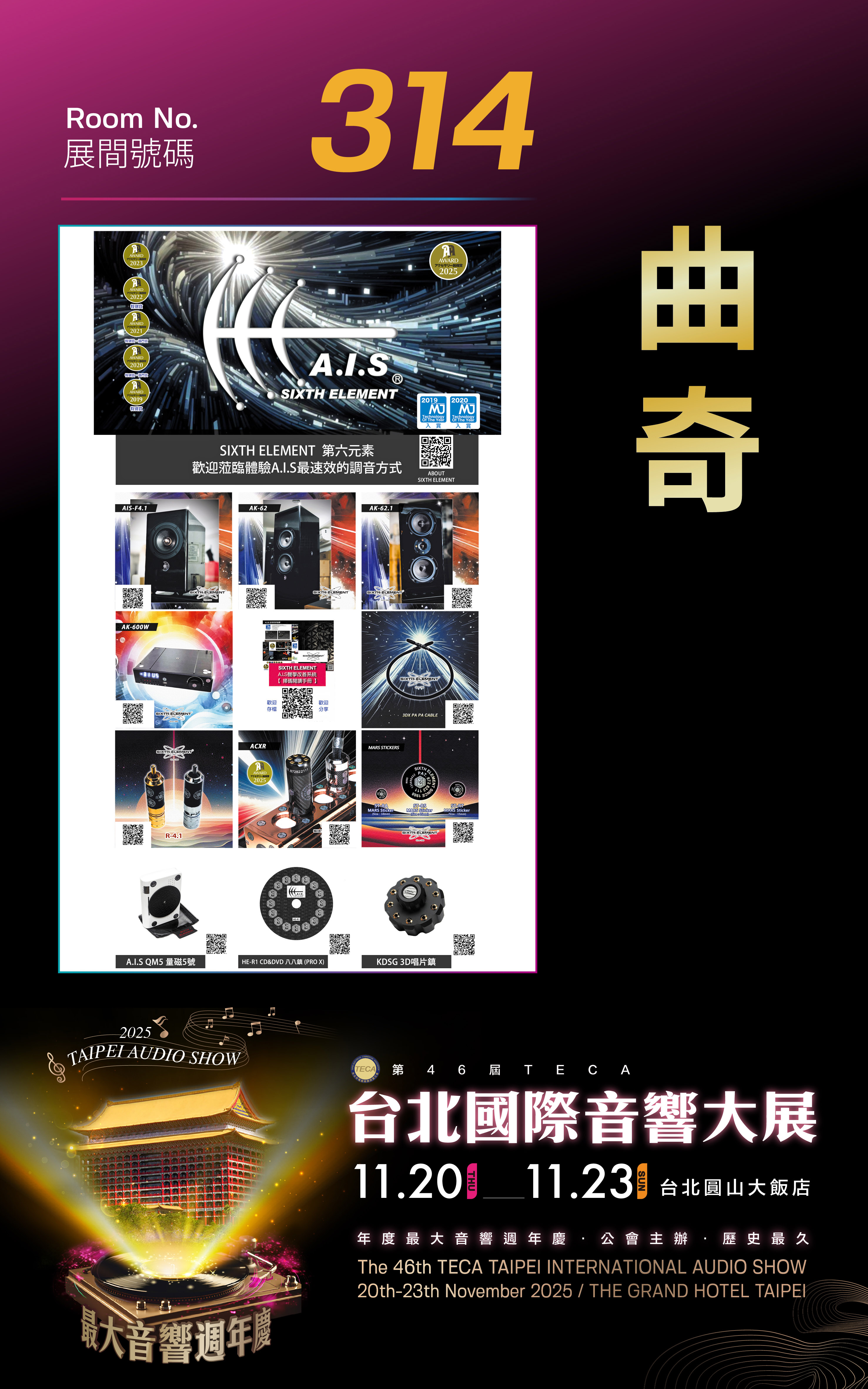 SIXTH ELEMENT 第六元素 2025年11月 第46屆 台北國際音響大展。圓滿落幕。2025